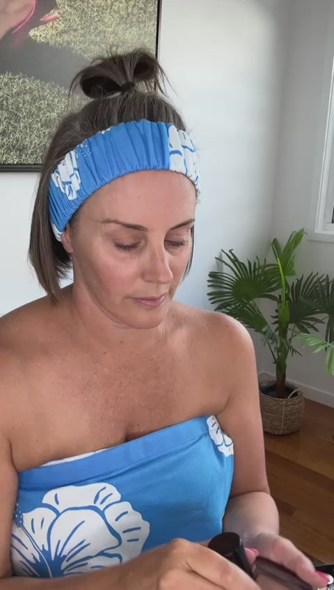 PrepDress set Terry Wrap & Headband Hibiscus - Sky Blue